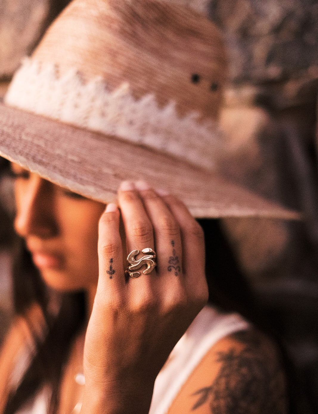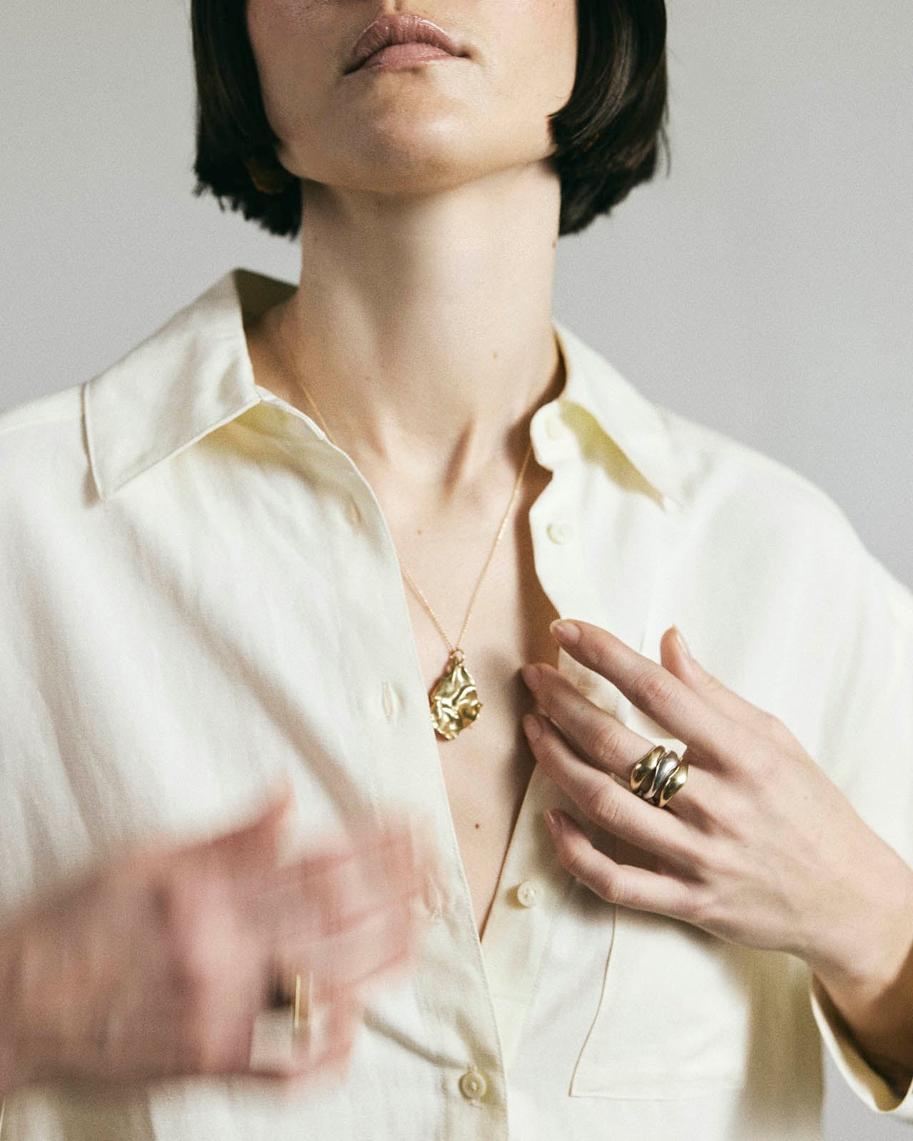uses traditional metalsmithing techniques to create her collections. With a deep and lifelong connection to craft alongside her ability to meld an organic quality with compassionate meaning, her work creates objects which allow the wearer to connect with and hold space for what's most significant in their lives.