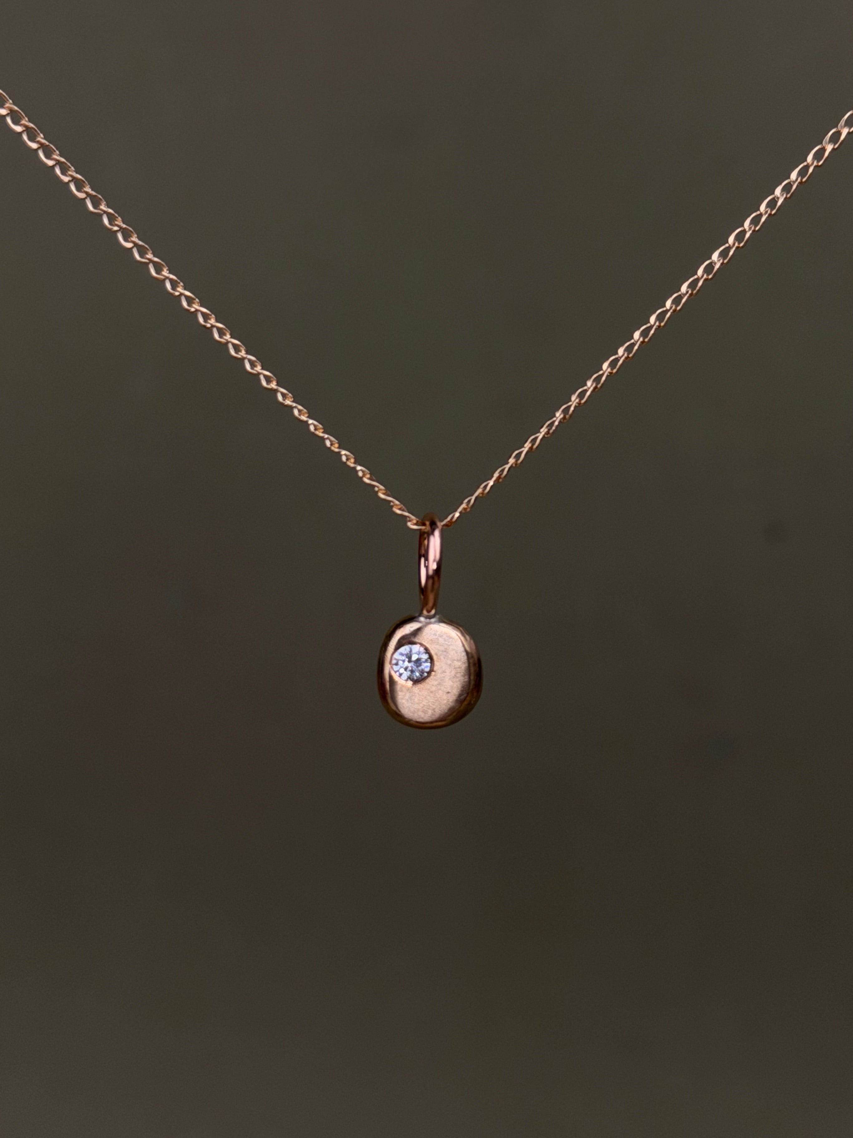 The perfect layering pendant made from recycling scrap metal in my studio. I melt down the brass or silver from my castings and press them while they're molten. I never know what shape or texture will develop, so every one of these are unique. Once polished the pendant is set with a 2mm cubic zirconia for a little bit of sparkle.