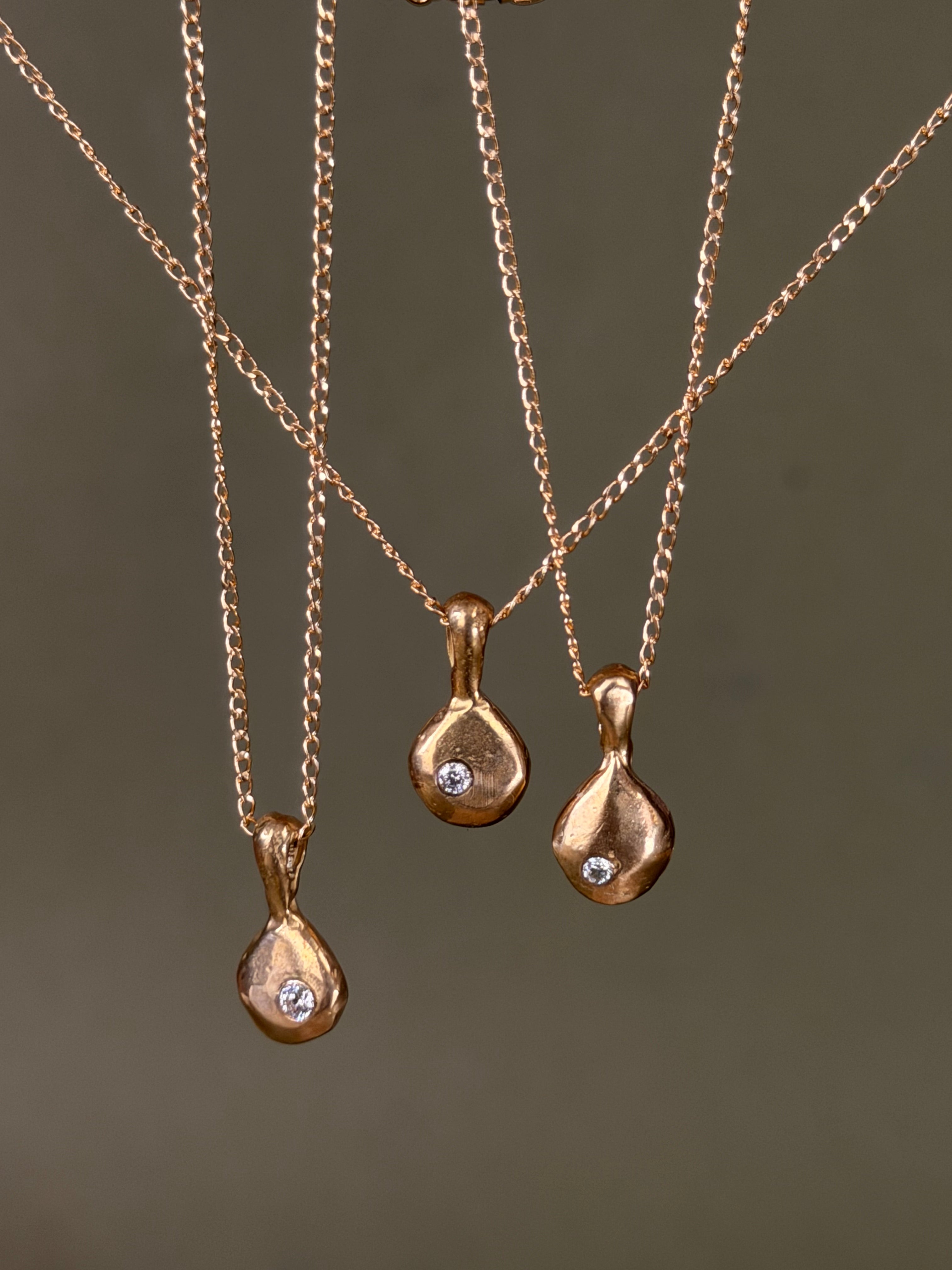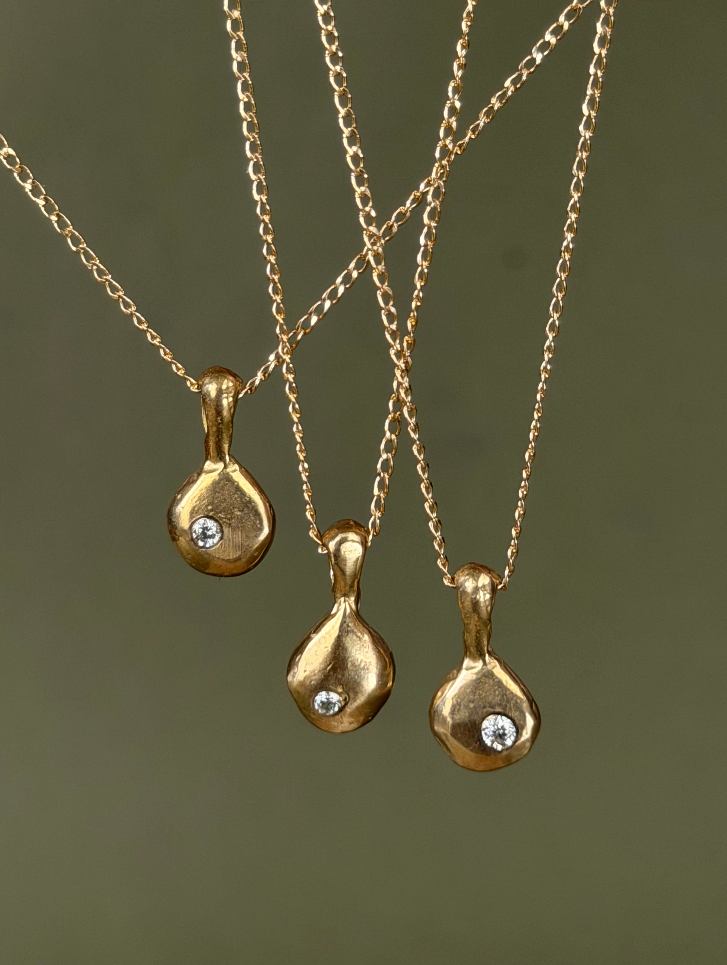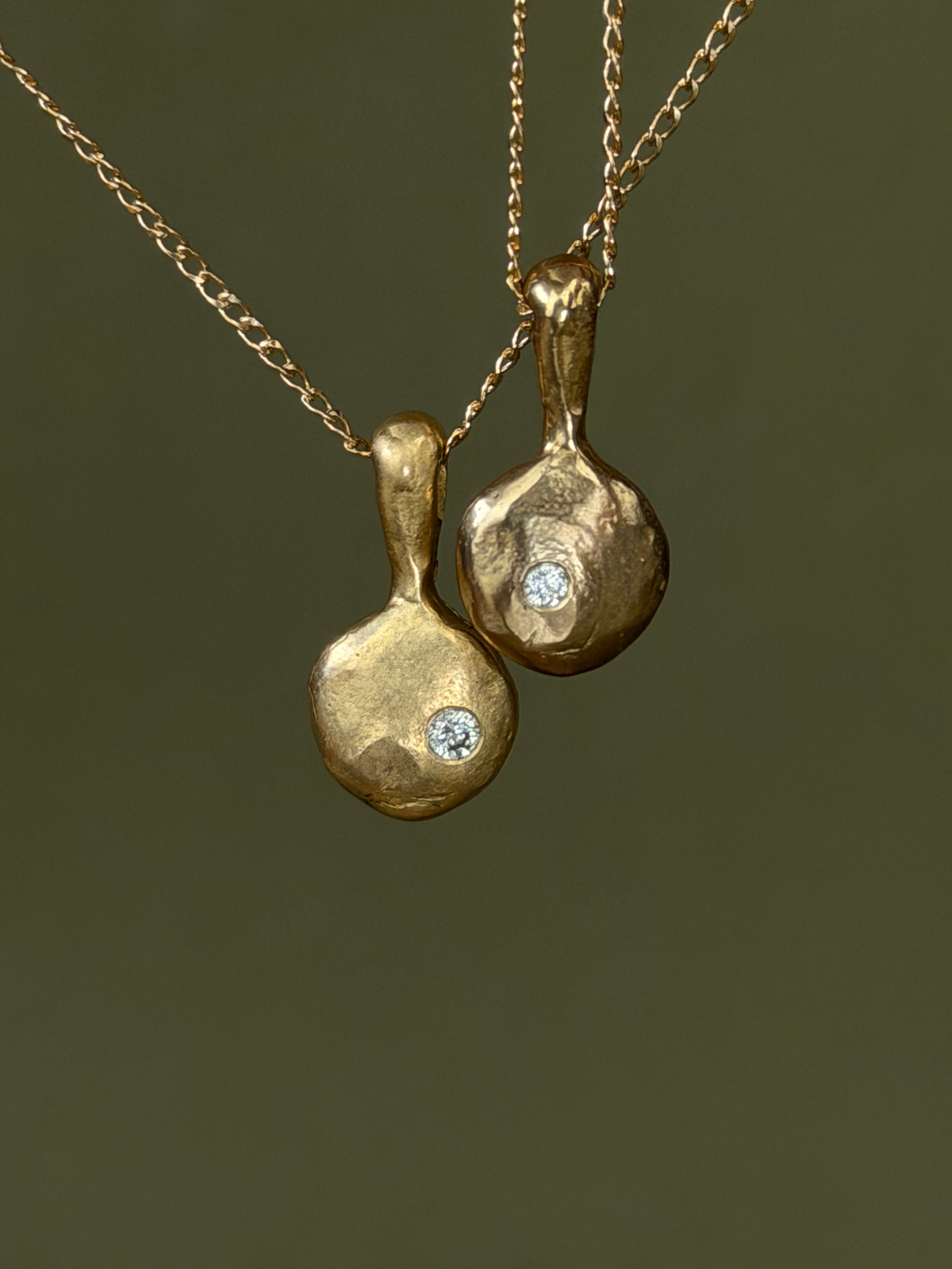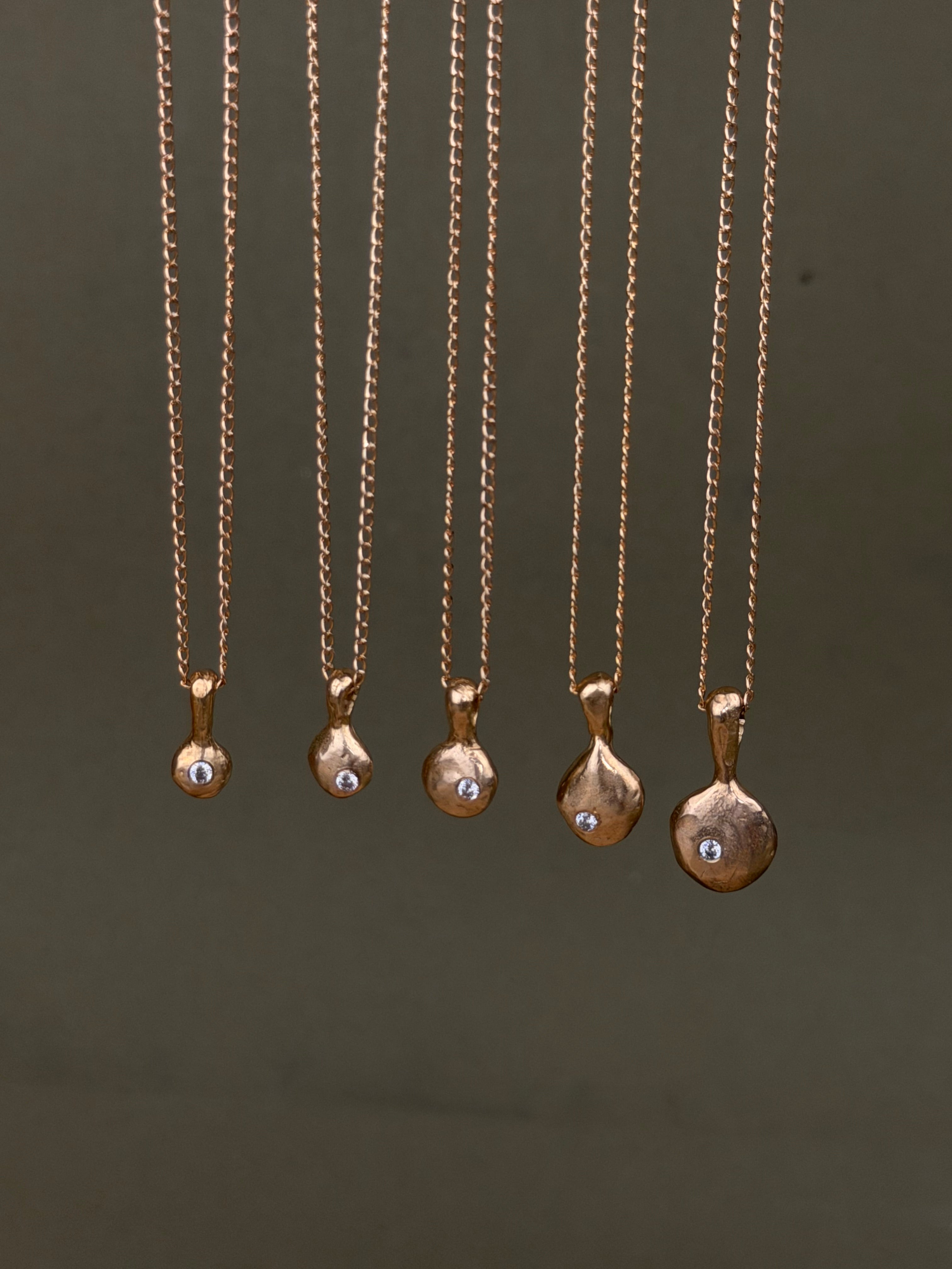 Choose your pendant size, your metal, length of chain and even the placement of your stone—centered, left, or right—so your piece feels uniquely yours.