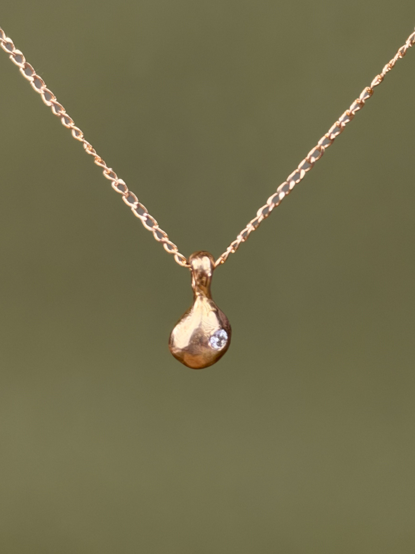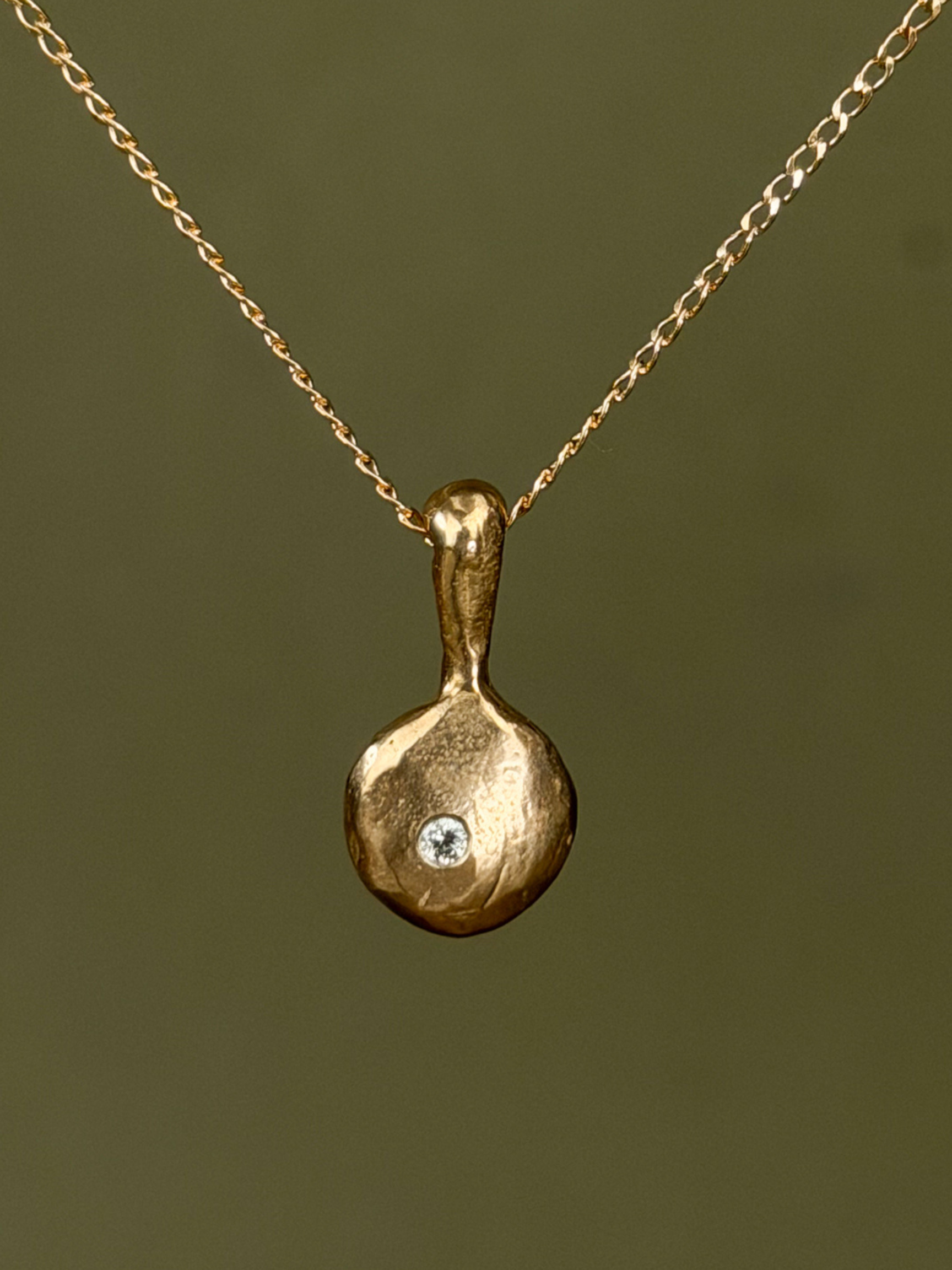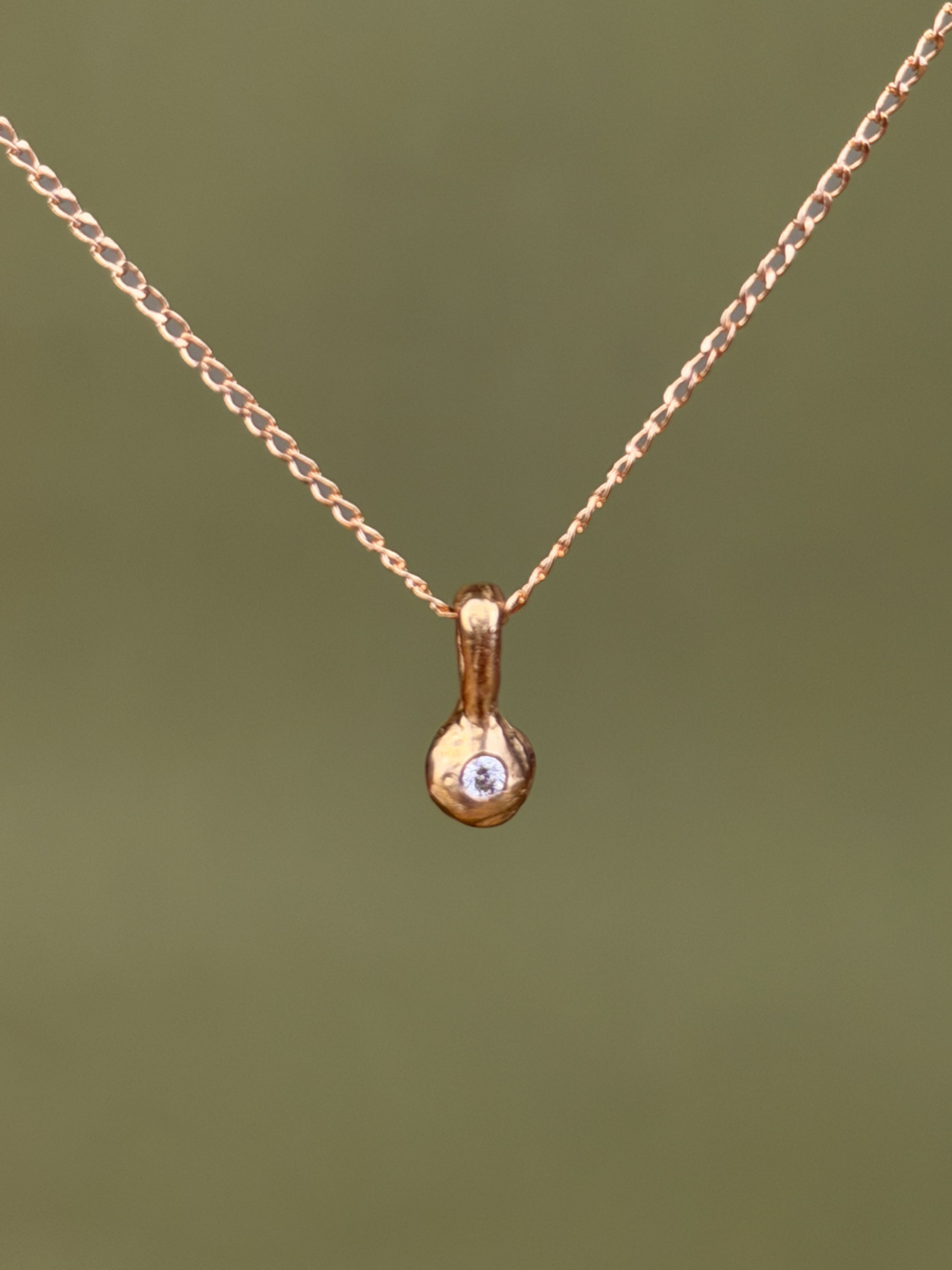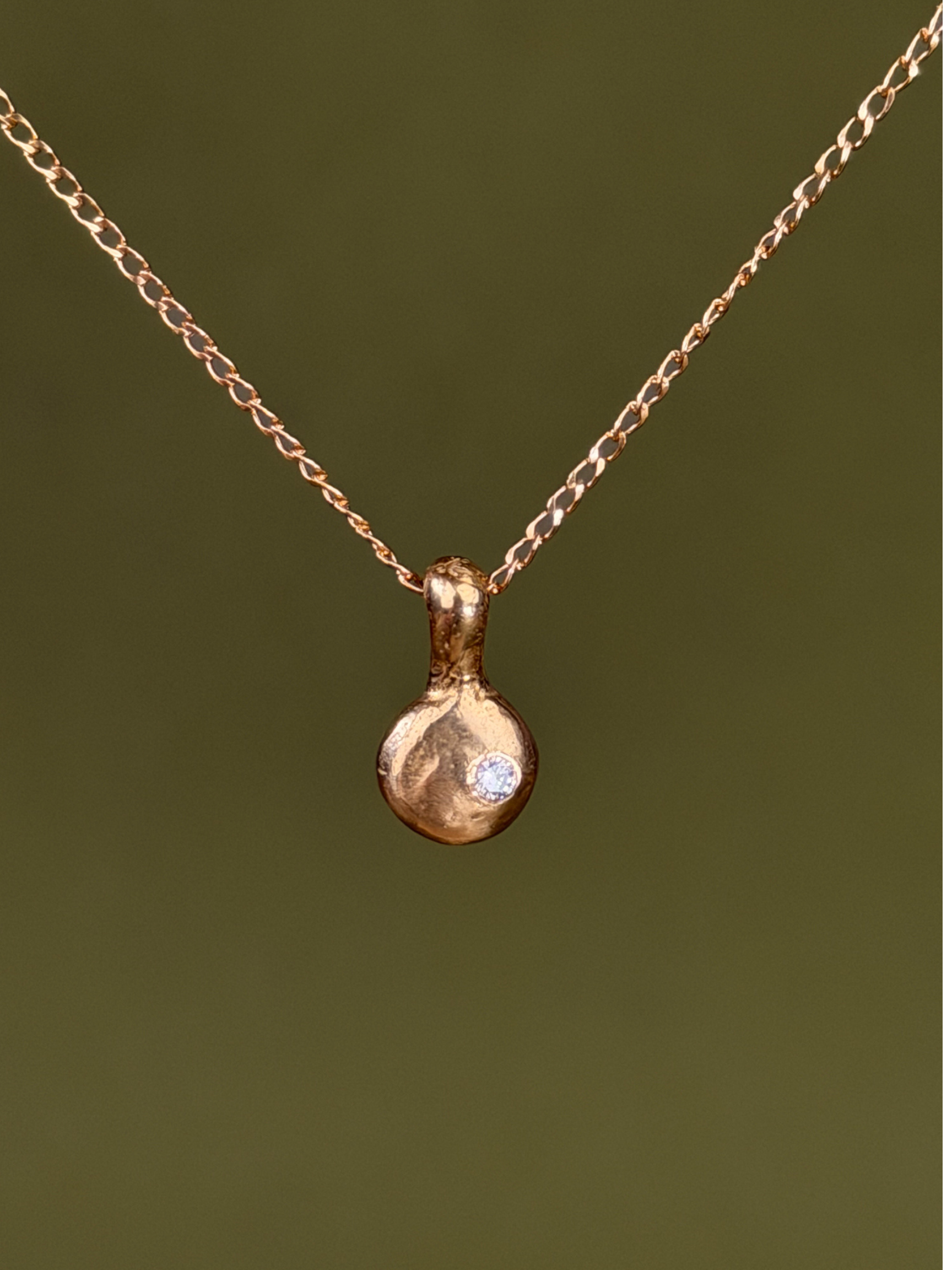 Choose your pendant size, your metal, length of chain and even the placement of your stone—centered, left, or right—so your piece feels uniquely yours.
