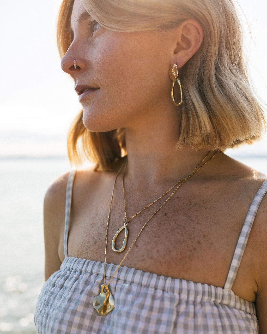 We use both brass and silver, along with 14k gold fill chains and ear wires for our jewelry pieces. Out brass is a high quality brass called "jewelers brass" which is a close color match to 10k gold. This alloy allows for daily wear that's waterproof and resists tarnish.