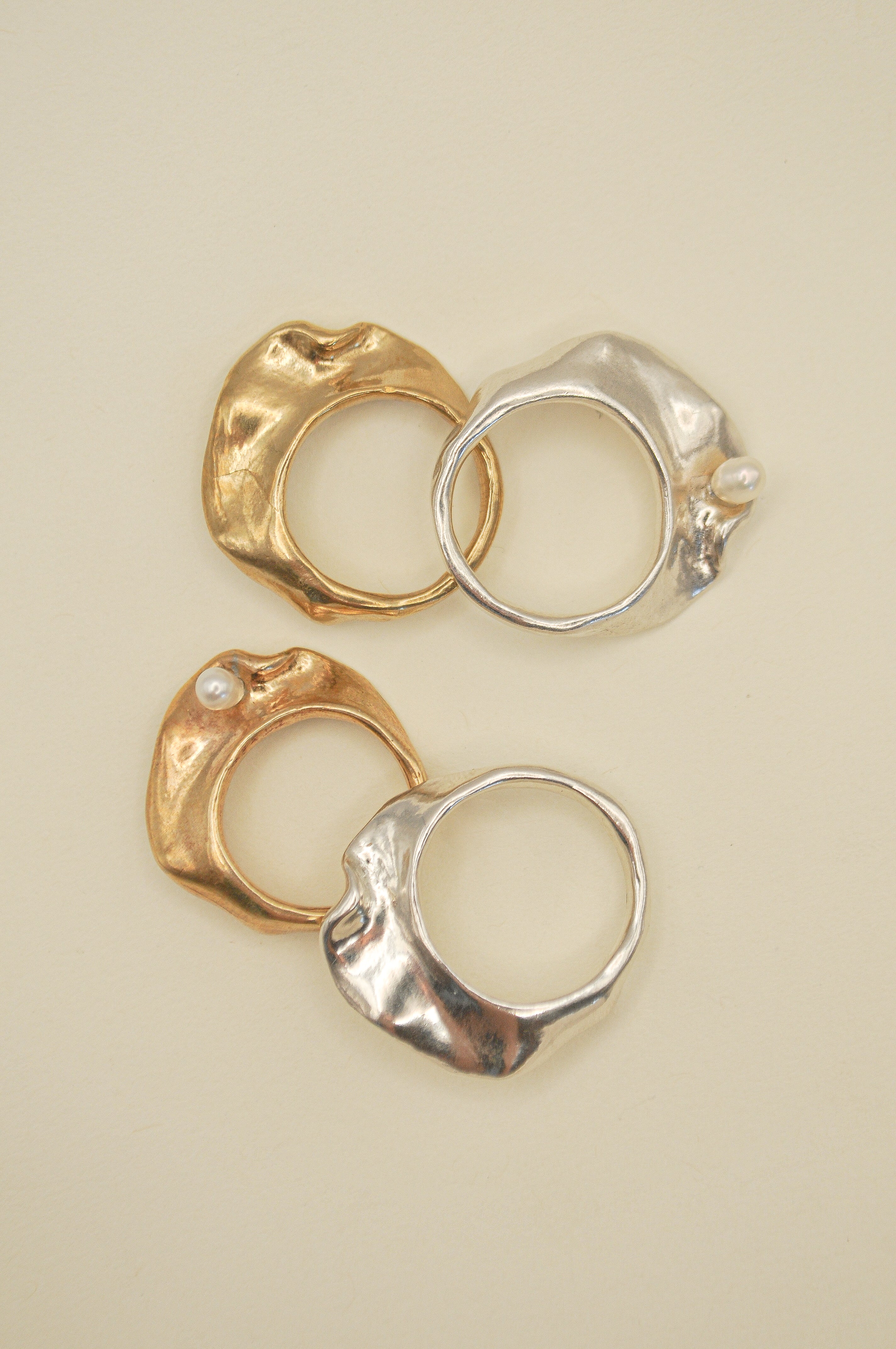 Hand carved and lost wax cast in either brass or sterling silver. Very easy to wear and layer with other pieces.
