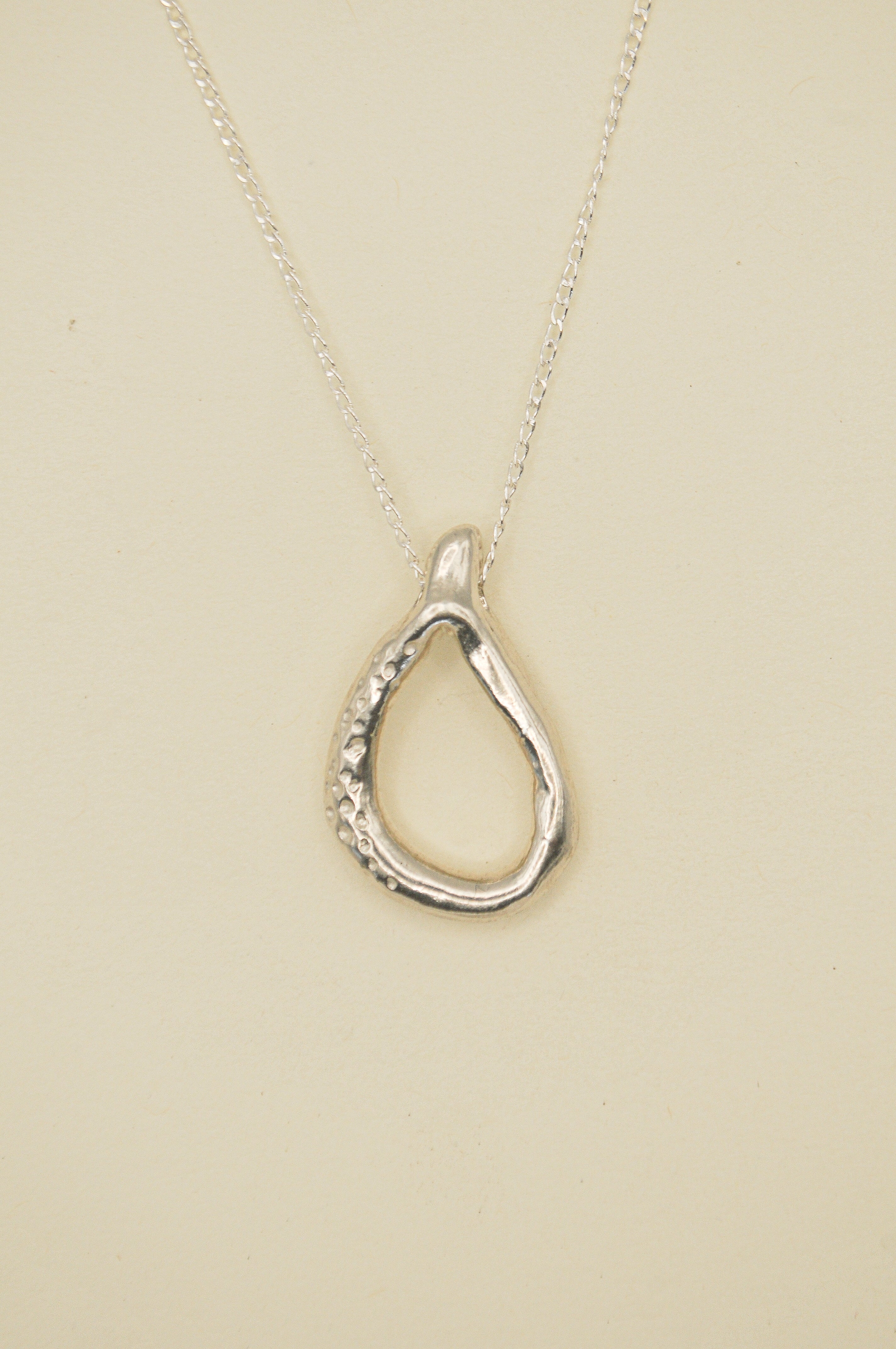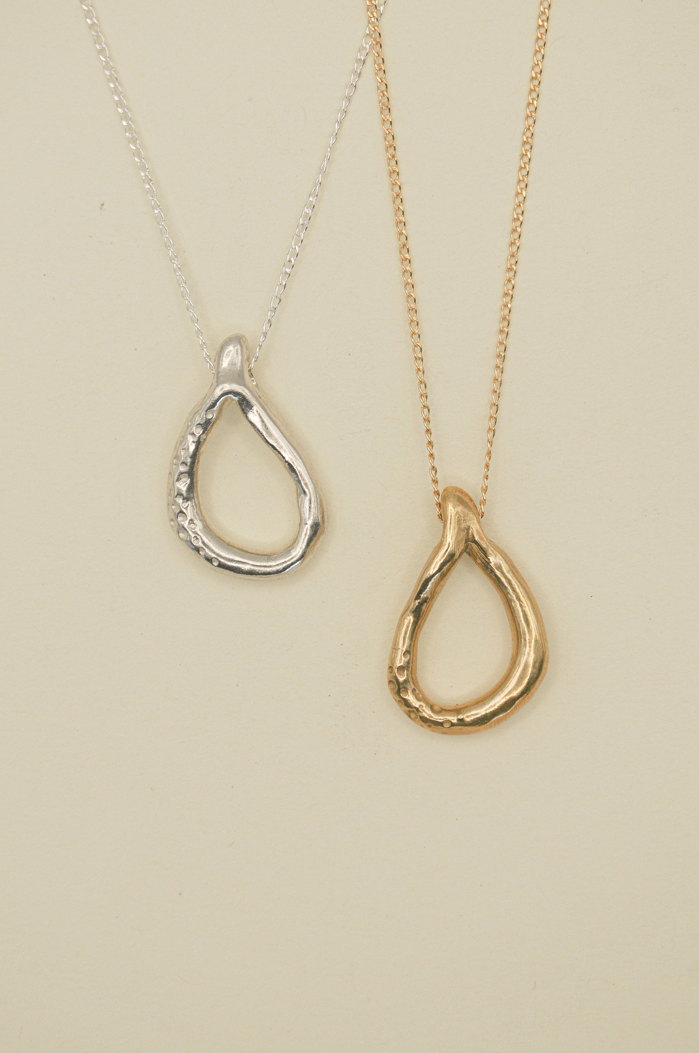 Hand carved and lost wax cast in either brass or sterling silver. Hangs on a coordinating 14k gold fill or sterling silver curb chain.