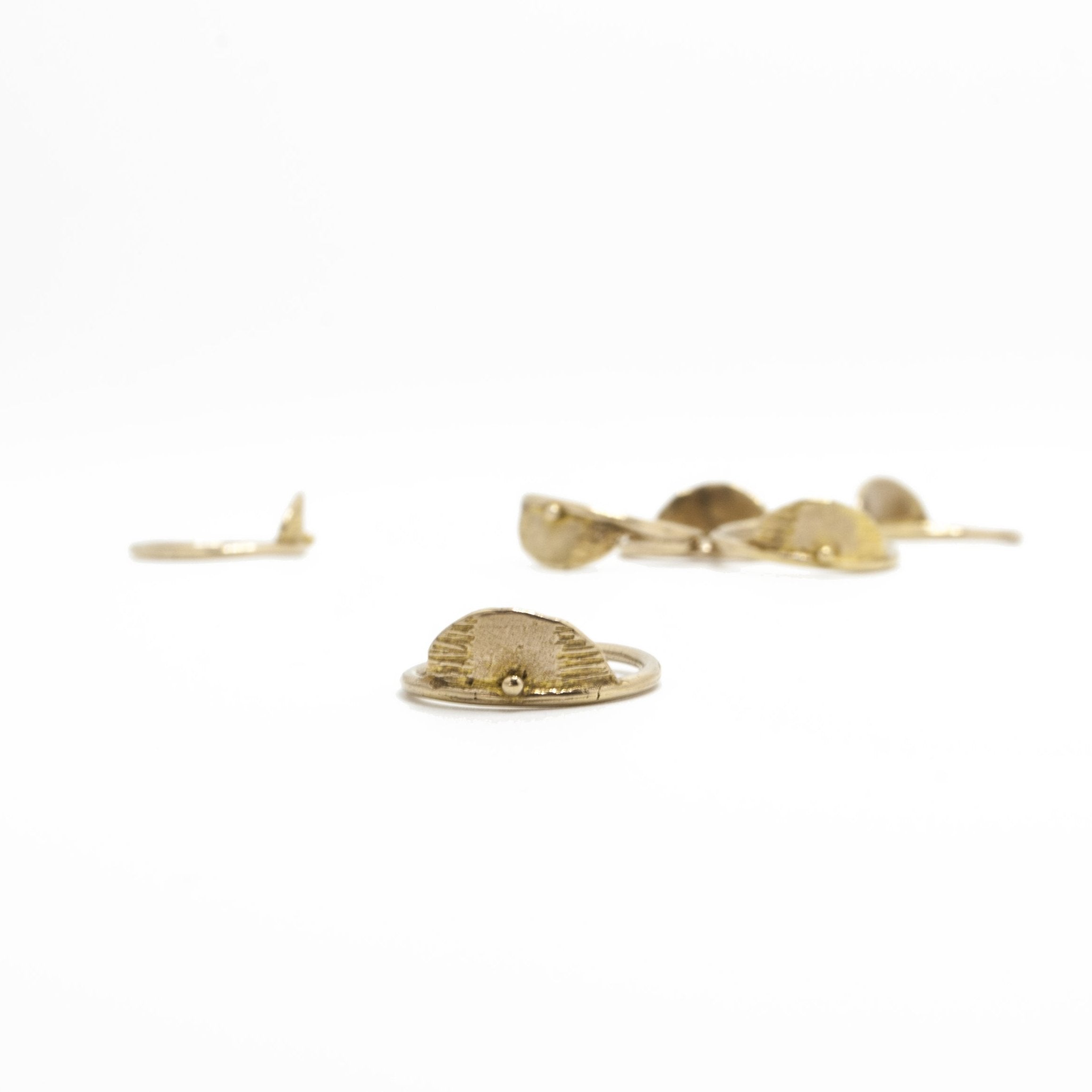Hand carved in wax and lost wax cast in brass or sterling silver.