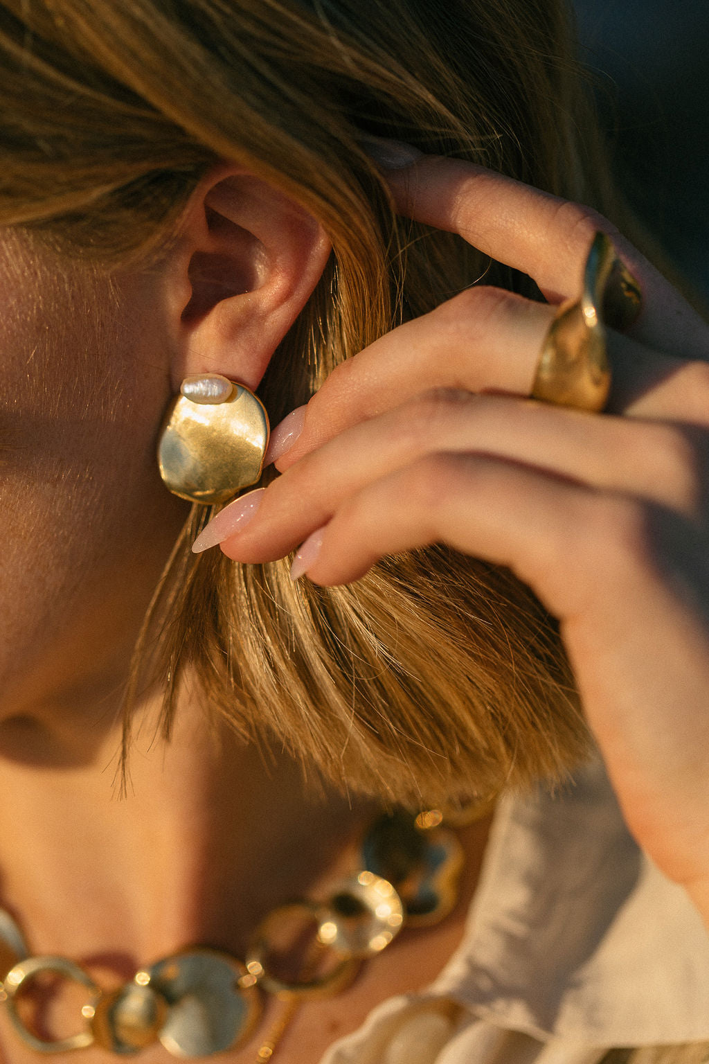 It is in the nature of silver and raw brass to tarnish over time. Although it can be polished back to it’s original state, we encourage you to embrace the evolving finish of the metal. A jewelry polishing cloth works wonders for both silver and brass, but if you prefer, you can gently wash the jewelry with cleaning powder like Bar Keepers Friend to restore it’s original finish. Jewelry is best stored in a dry environment.