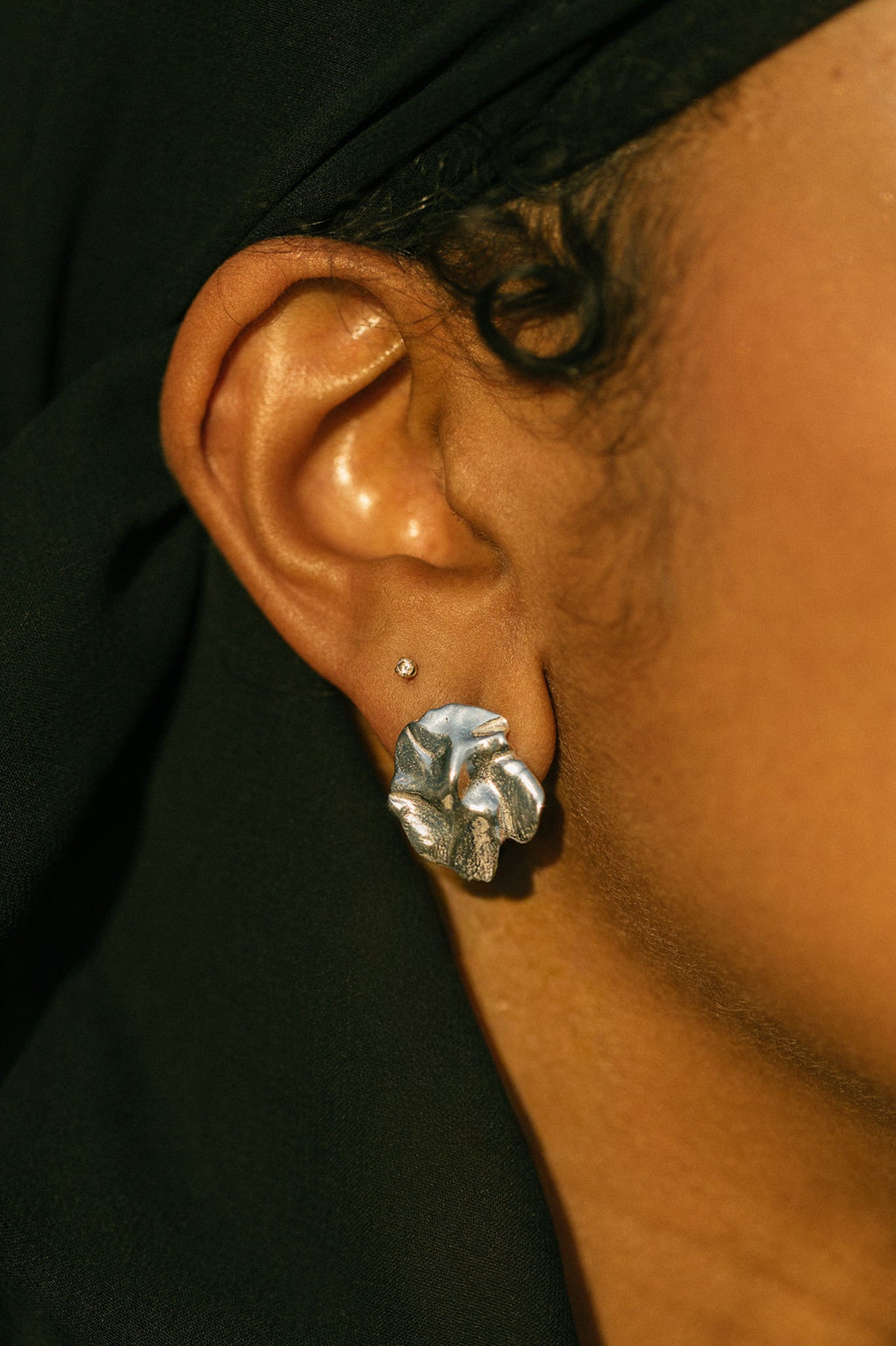Hand carved and lost wax cast in either brass or sterling silver with sterling silver posts.