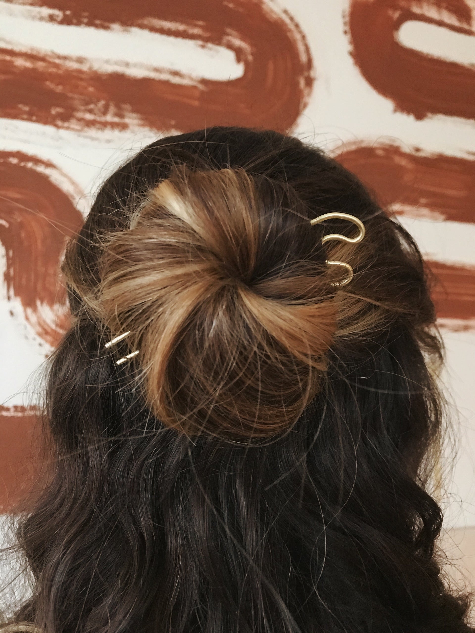 Style up that top knot with a sweet and effective bun pin! If you've ever used a pencil to hold up your mane then you're an expert on how to use these! These are all hand-forged so each one is slightly different.