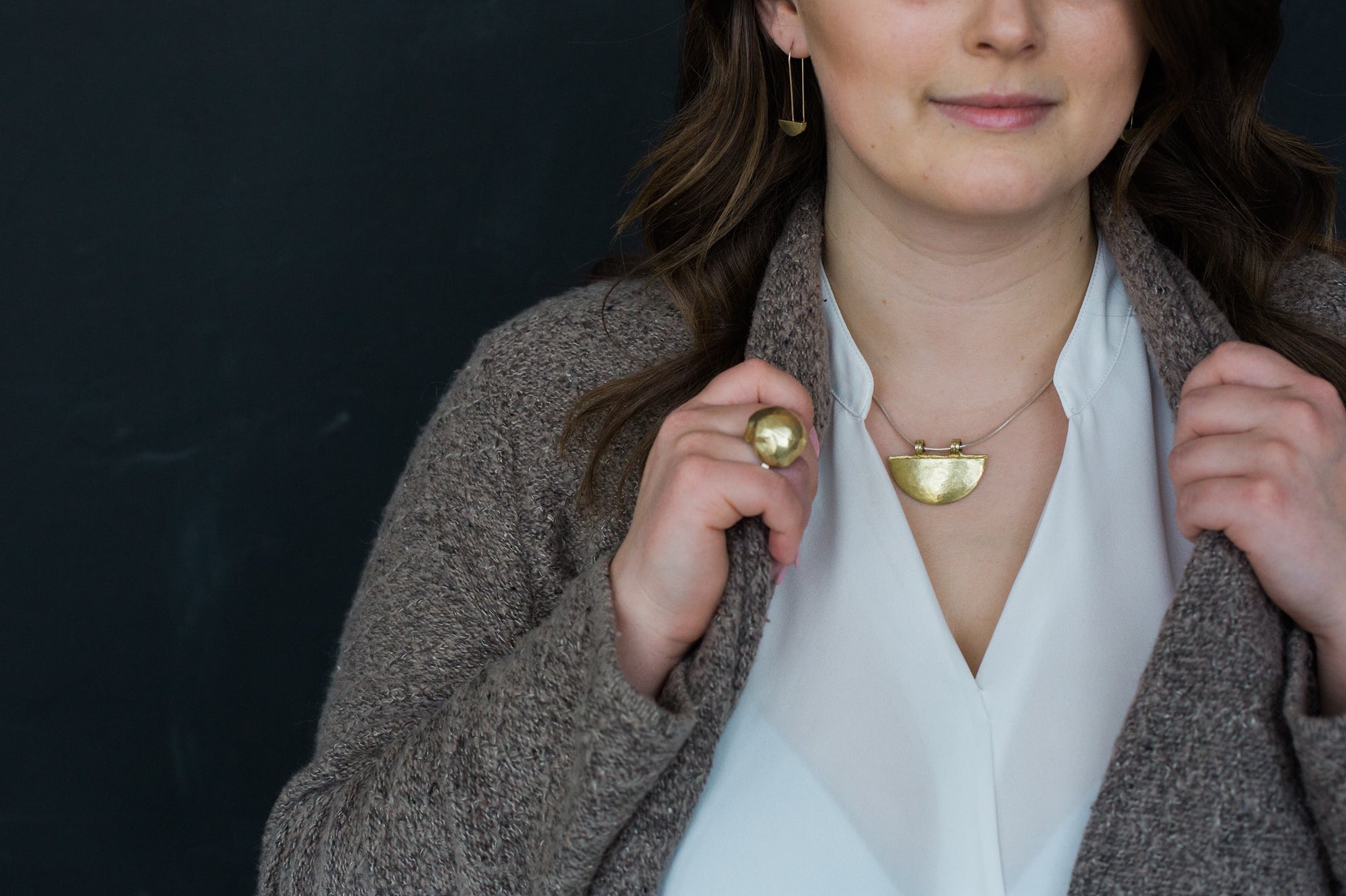 BRASS: The brass we cast with is called Jewelers Brass. It's an alloy which gives it its stunning color which compares to 10k gold in tone. Using brass allows me to create substantial pieces in gold tones at a fraction of the cost of gold. It wears incredibly well, is slow to tarnish, and easily cared for in the same way that you'd care for silver.